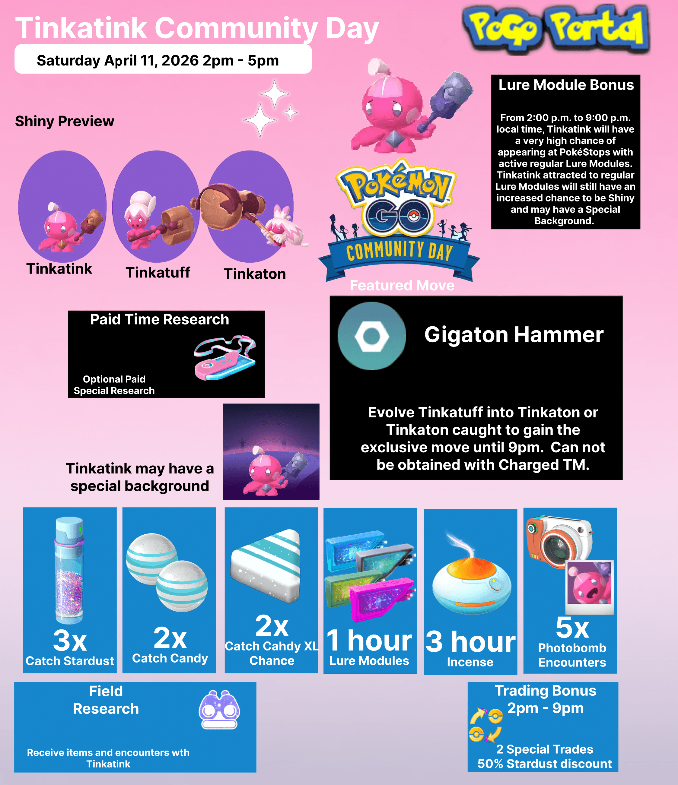 require 50% less StardustTinkatink will have increased spawns. There will be a special background available.